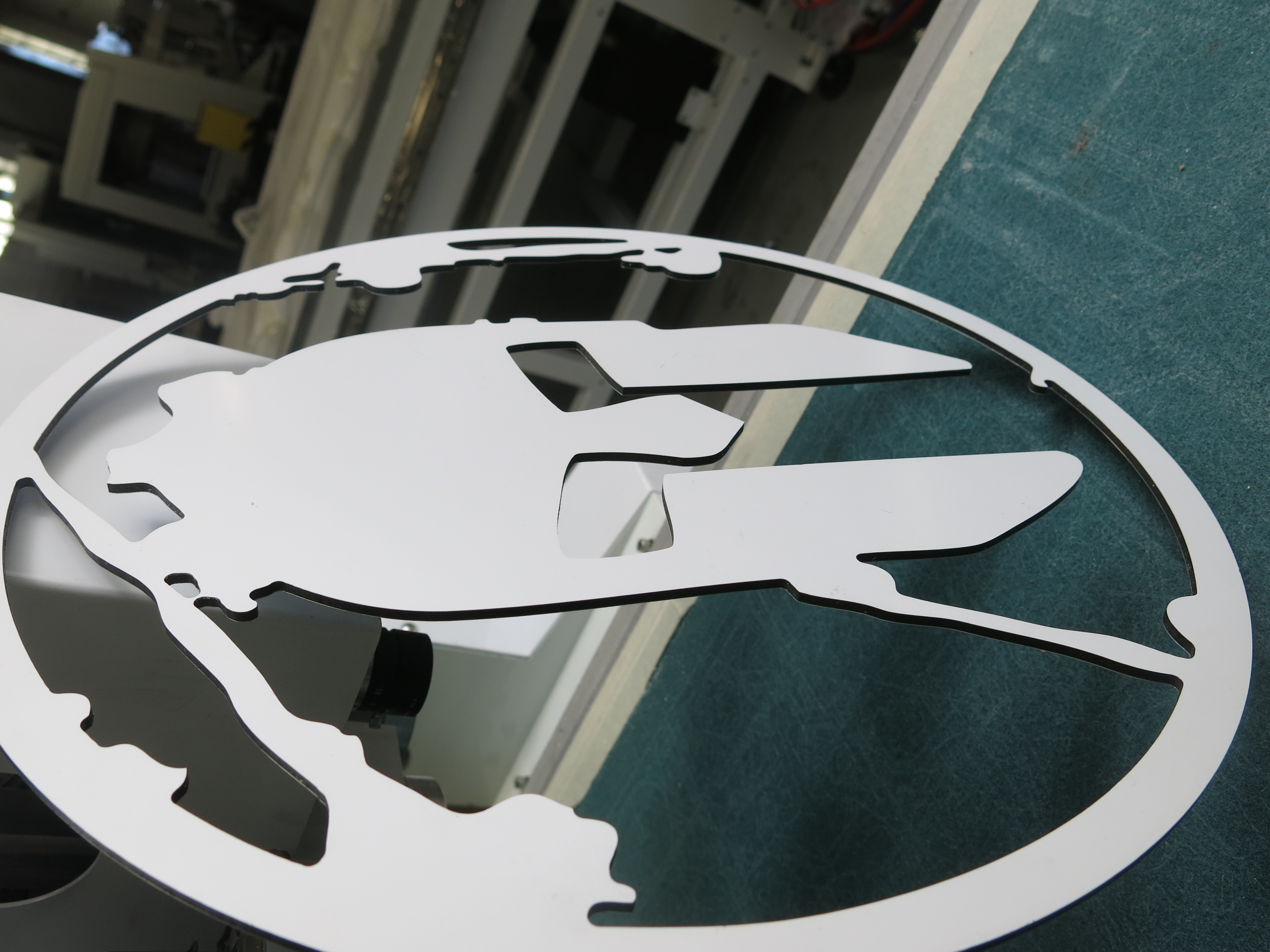 High-Frequency router used for cutting materials like aluminum, acrylic, hard plastic, soft plastic, di-bond, wood, gator board, and much more.